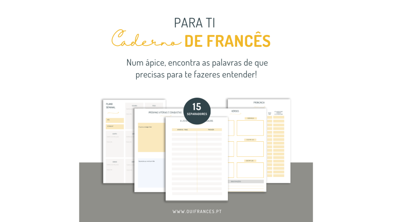 À medida que vais ouvindo, lendo e querendo falar, assimilas palavras soltas, expressões, verbos ou até sons, vais poder ir anotando de forma organizada no teu CADERNO DE FRANCÊS.